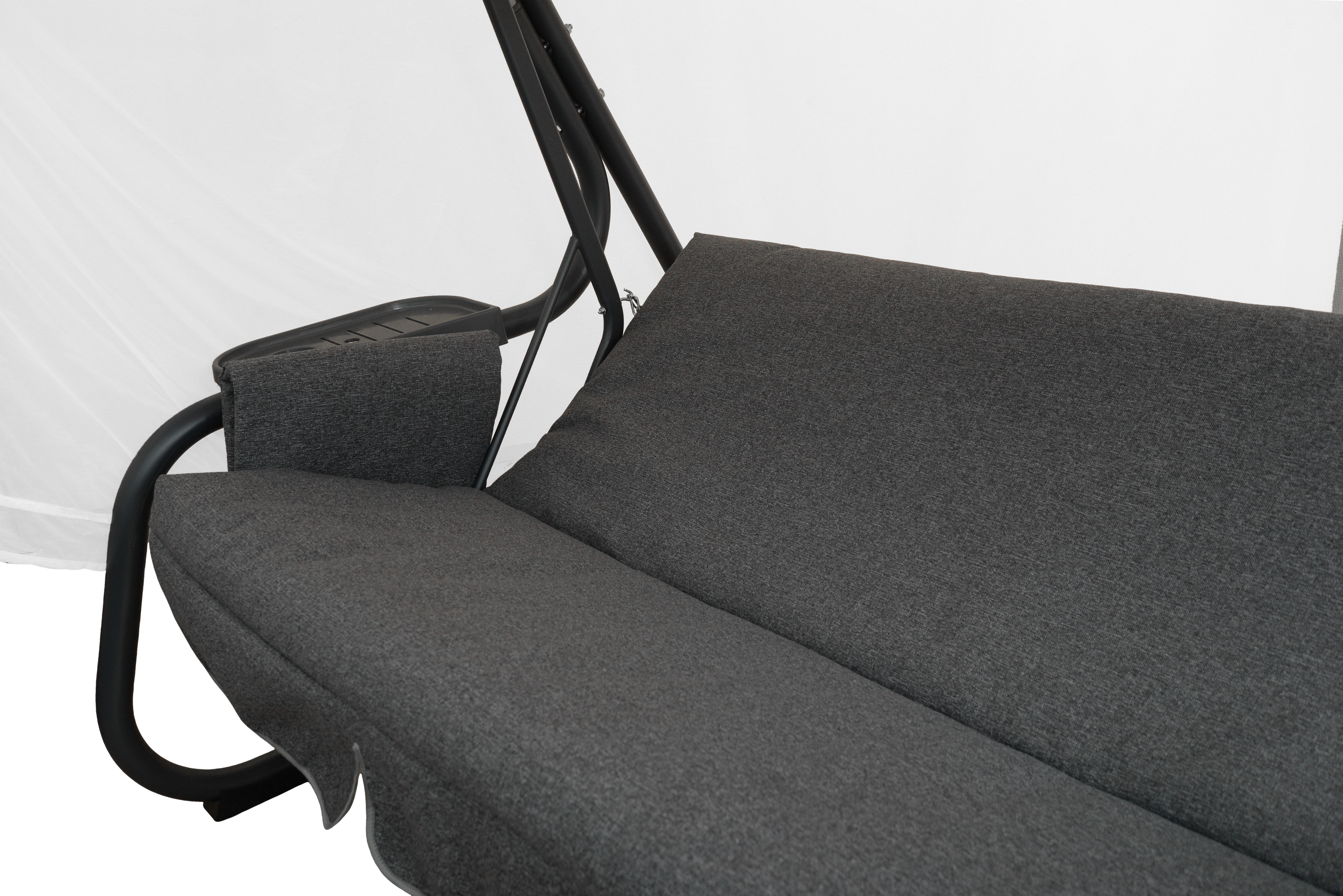 Тент: водоотталкивающая ткань 100% п/э, плотностью 175–230 г/м², с противомоскитной сеткой из полотна гардинного типа (плотность 39 г/м²), закрепленной на тенте с помощью молний