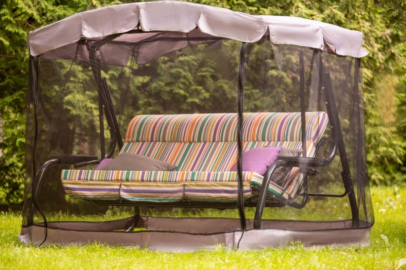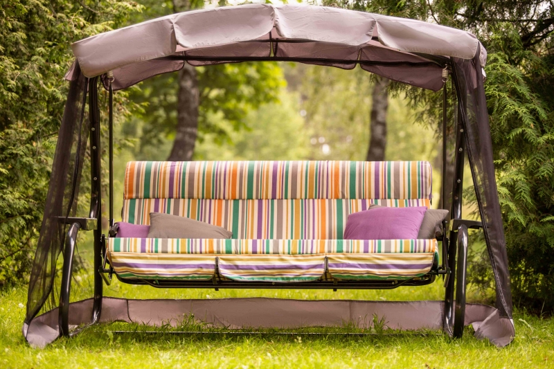 Качели садовые "Турин Премиум" с1265. В комплекте москитная сетка, подушки -4шт, наполнитель мягкого элемента поролон толщиной 80 мм, наполнитель подушек - синтепон (полотно полиэфирное объемное).Труба каркаса стальная Ø 51х1,4мм, максимальная нагрузка 280кг.