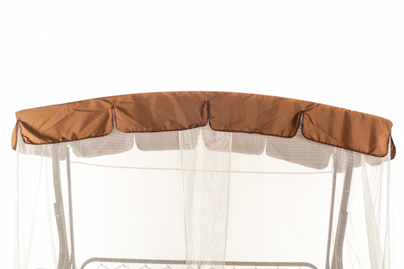 Тент: Тент ткань с водоотталкивающей отделкой 100% п/э плотность 120г/м2 , с противомоскитной сеткой (полотно гардинное основовязаное 100% п/э плотность 39г/м2) - фиксация сетки на тканевом тенте осуществляется с помощью горизонтальных и вертикальных застежек – «молний».
