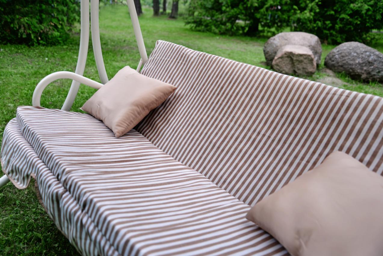 Мягкий элемент: ткань 45% п/э – 55% хлопок, плотность 108-111г/м2, наполнитель мягкого элемента аэрофом, наполнитель подушек – (крошка поролона). Подушки – 2шт. Основание сидения ткань полипропиленовая.