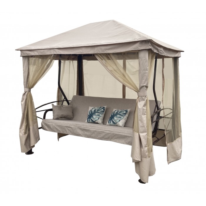 Качели садовые Siesta Премиум с4270 - одна из лучших моделей среди качелей белорусского производства. Каркас изготовлен из стальной трубы диаметром 60 мм и толщиной 1,5 мм, толщина матраса 80 мм, максимальная нагрузка 380 кг.