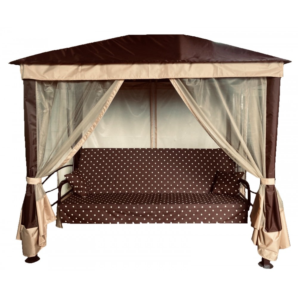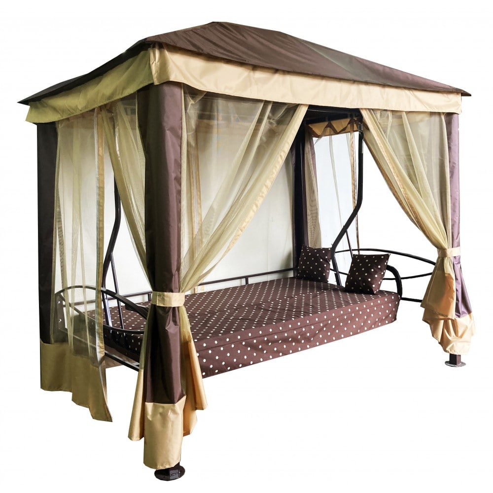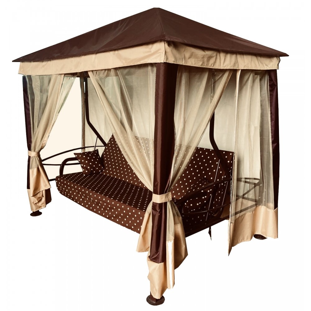 Качели садовые Сиеста с323 - самая просторная конструкция среди качелей белорусского производства. Каркас изготовлен из стальной трубы диаметром 60 мм и толщиной 1,5 мм, толщина матраса 80 мм, максимальная нагрузка 380 кг.