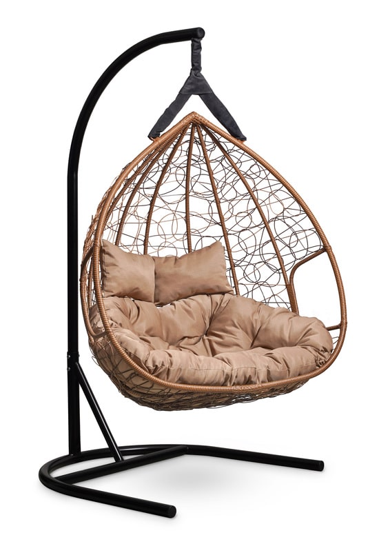 Подвесное двухместное кресло-кокон FISHT шоколадный кокон+бежевая подушка