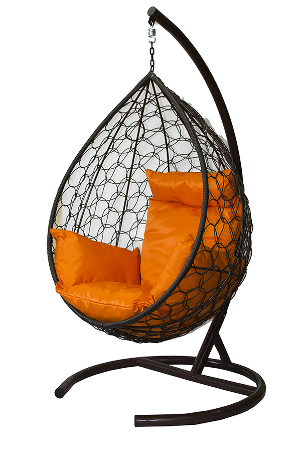 Подвесное кресло-кокон California коричневый каркас+ оранжевая подушка
