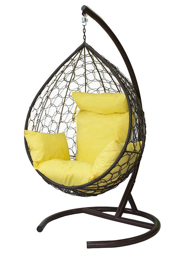 Подвесное кресло-кокон California коричневый каркас+ желтая подушка