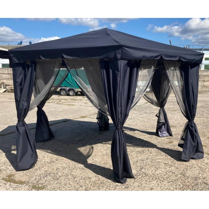 Садовый шатер "Султан" отлично подойдёт для проведения свадеб, мероприятий и любого отдыха на природе. Защита от ветра и осадков, усиленный каркас, анкерные фиксаторы подножек. Размер габарит изделия: ДхШхВ — 3950х2650 мм
