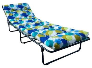 Матрас: ткань 45% п/э – 55% хлопок, плотность 108 – 111 г/м2, ткань полипропиленовая наполнитель крошка поролона, фиксация к каркасу осуществляется с помощью пружин.
