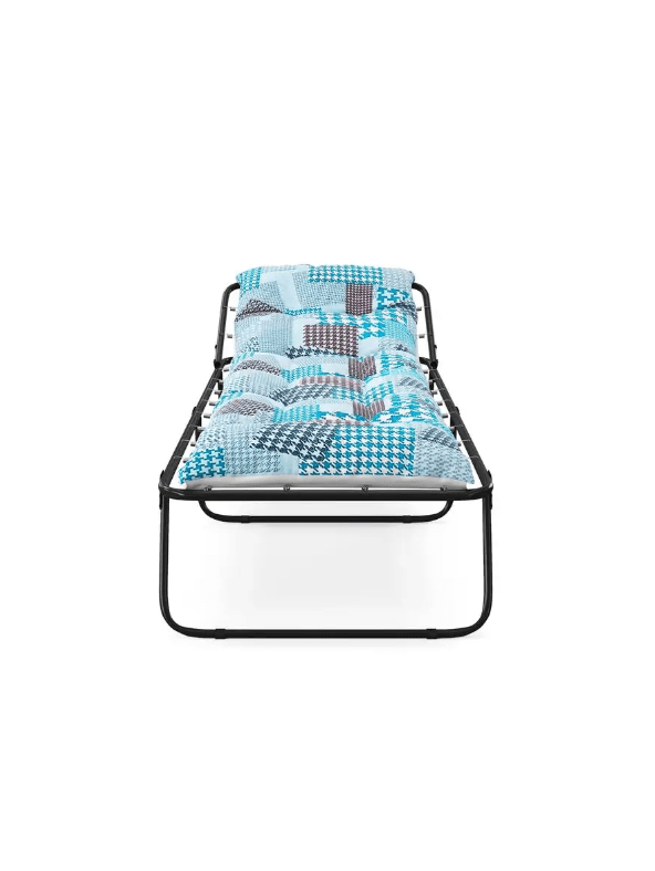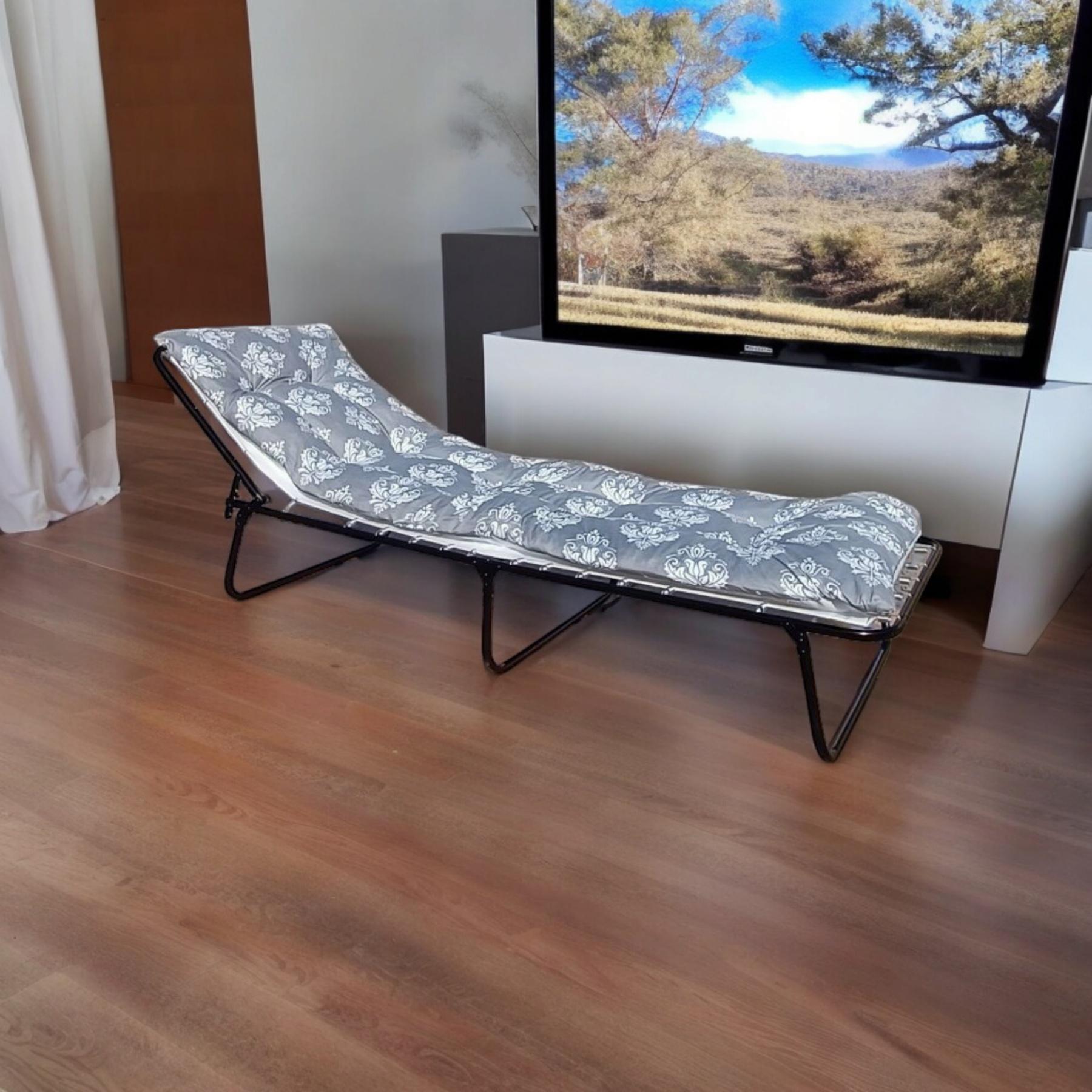 Дополнительное спальное место для ваших гостей. Не занимает много места в сложенном состоянии. Вшитый матрац толщиной 6 см., спальное место 73 см., длинна 196 см. Хорошая стальная труба диаметром 22 мм, покрашена полимерной краской. Размер кровати в разложенном состоянии 196х73х34 см. Матрас - смесовая ткань 45% п/э + 55% хлопок, армирование полипропиленовой тканью плотностью 108-111 гр/м2, наполнитель поролоновая крошка толщиной 10 мм. крепление к каркасу с помощью пружин. Матрас не съемный! Максимальная нагрузка 120 кг.