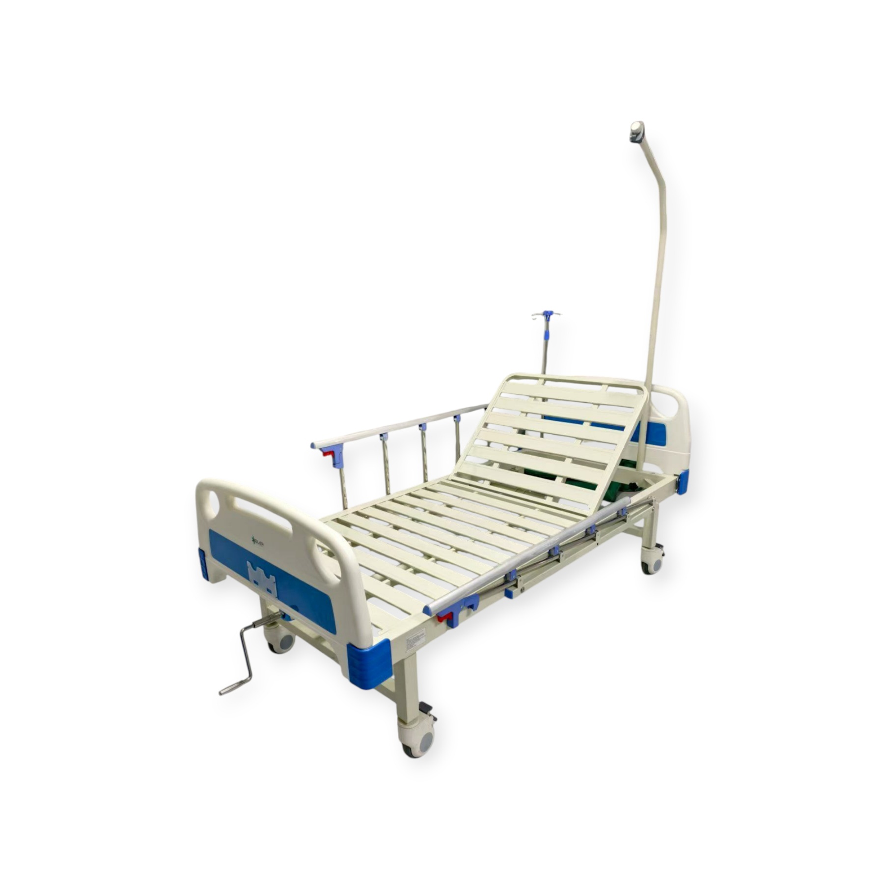 Комплектация: кровать, боковые ограждения, колёса с тормозами, влагостойкий двусторонний матрас (поролон + кокос), гусак, инфузионная стойка