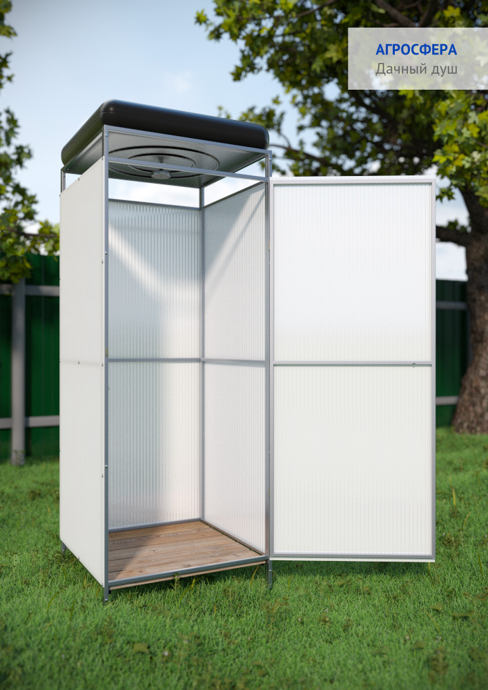 ДУШЕВАЯ КАБИНА АГРОСФЕРА С БАКОМ 160Л И ОБШИВКОЙ КАРКАС ИЗ ОЦИНКОВАННОЙ ТРУБЫ 20*20 ММ